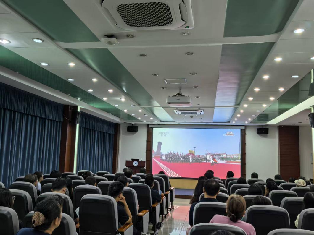 9月3日,纪念中国人民抗日战争暨世界反法西斯战争胜利80周年大会在北京隆重举行。中共中央总书记、国家主席、中央军委主席习近平发表重要讲话。总务部党支部与图书馆党总支联合组织收看直播活动。