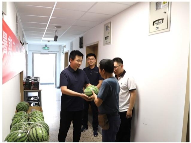 暑假伊始烈日炎,校园建设不断线。7月7日,校工会副主席张芳一行来到两校区在施建设项目、教学科研宿舍楼宇,代表学校对暑期仍坚守一线的建设工人和属地物业员工表示慰问并予以亲切关怀。校工会为一线员工们送上清热解渴的饮品、西瓜等物资,把清凉送到施工一线、把关怀送到物业员工心坎...
